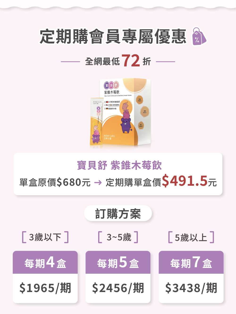 寶貝舒紫錐木莓飲:單盒原價$680元➜定期購單盒價$491.5元